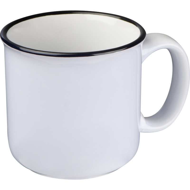 Tasse aus Keramik im Nostalgielook mit schwarzem Rand und einem Füllvermögen von 300 ml